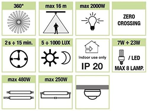 Sensori di presenza a raggi infrarossi da soffitto modello 1SPSP015 Perry