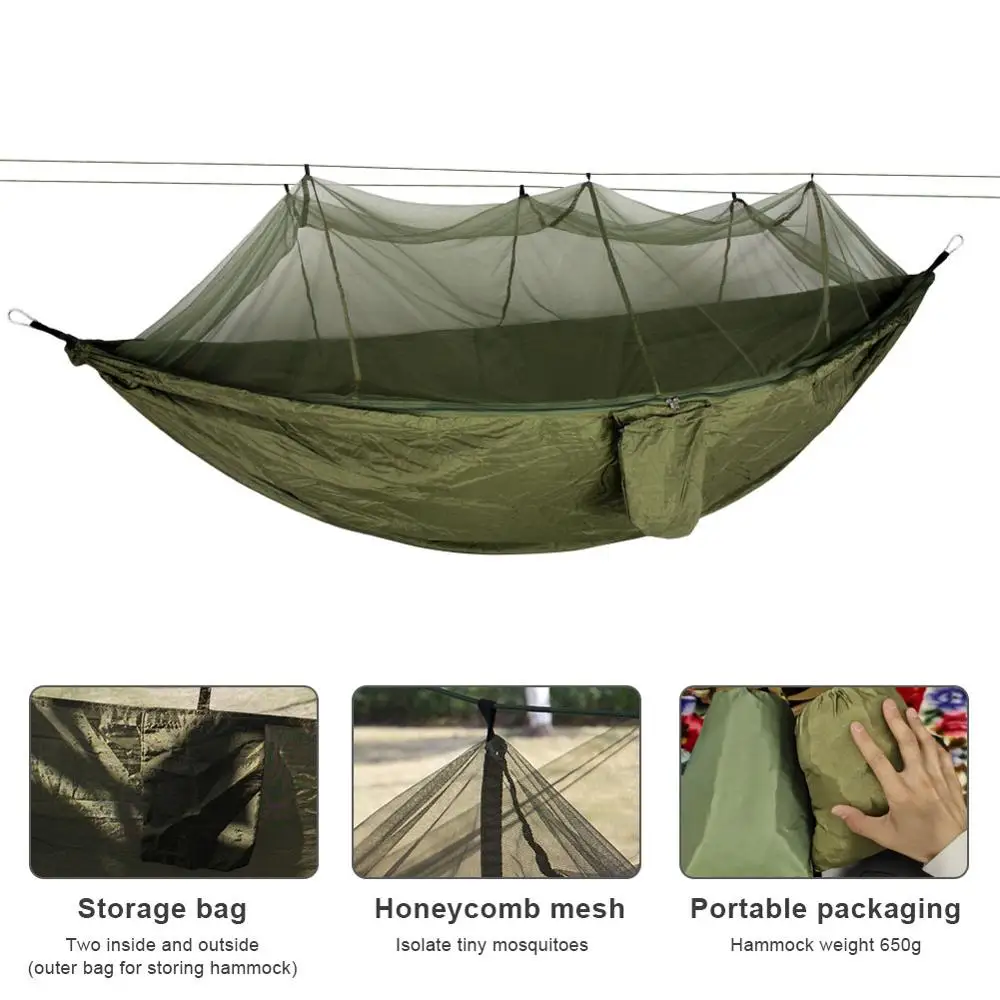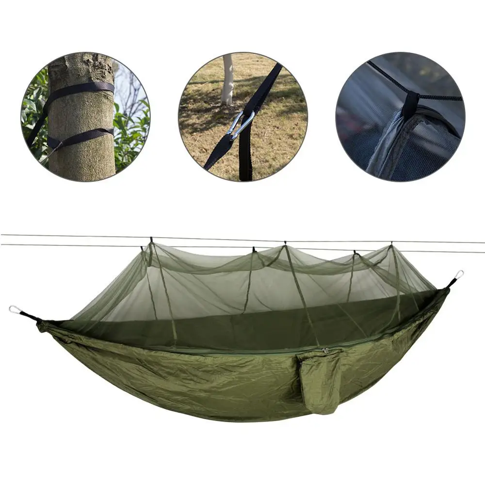 2 Person Hammmock Portable Outdoor Camping Hammock with Mosquito Net High Strength Parachute Fabric Hanging Bed Hunting Sleeping