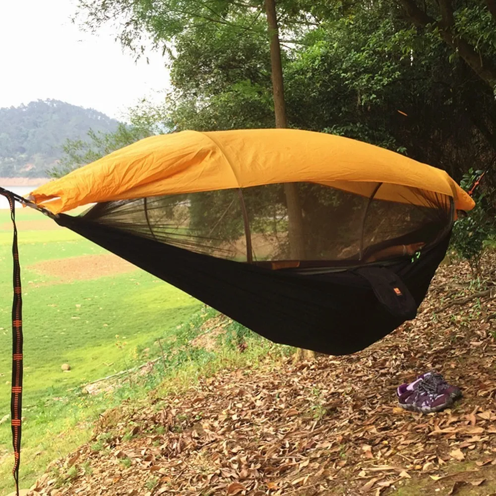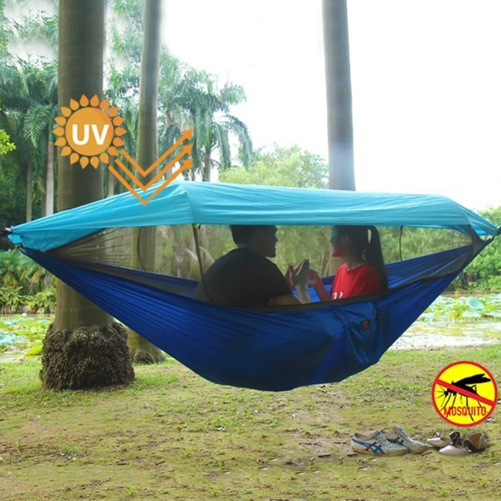 1-2 Person Portable Outdoor Camping Hammock With Awning Mosquito Net High Strength Parachute Fabric Hanging Bed Hunting Swing