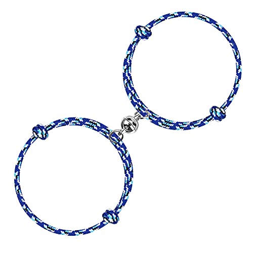 Personalizza il braccialetto magnetico delle coppie inciso la corda fatta a mano di attrazione reciproca per 2 braccialetti abbinati intrecciati regalo dei gioielli per le donne uomini (Blue White)
