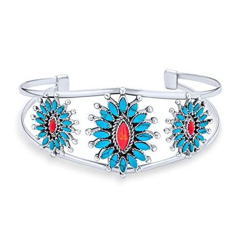 Personalizza lo stile Navajo sudoccidentale arancione rosso corallo blu turchese Zuni Needlepoint Jewelry Flower Blossom Wide Cuff Buffia per le donne .925 Argento sterling personalizzabile