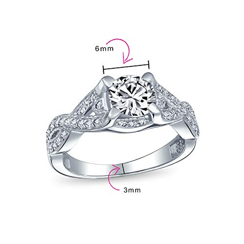 Personalizzare Romantico Vintage Art Deco Style 2Ctw Round Brilliant Solitaire Cut Aaa Cz Engagement Ring Per Donne Pave Criss Cross Torsione Infinito Band .925 Argento Personalizzabile