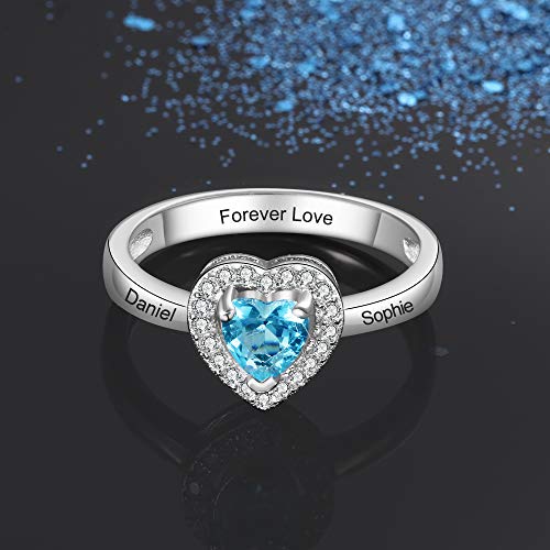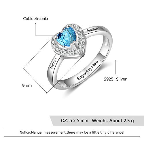 Personalizzata Anelli per Mamme Argento Anelli per Donne Ragazze Coppia Promettere Nozze Engragement Anelli simulato Birthstone inciso Nome Squillare Compleanno Regalo per Moglie Amore Dimensione 20