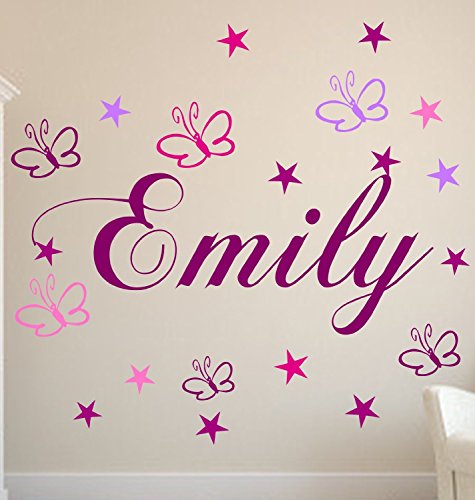 Personalizzata con nome, motivo stelle e farfalle da parete per la camera dei bambini