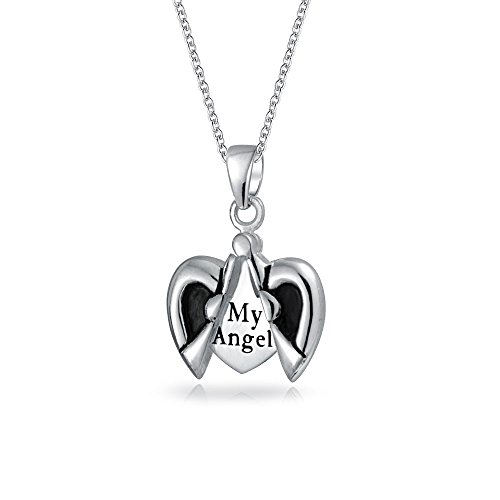 Personalizzato My Angel Word Opening Heart Shape Angel Wing Locket Pendente Collana 925 Sterling Silver Custom Engraved
