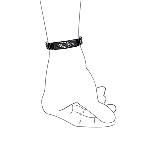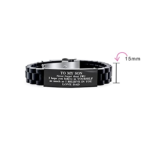 Personalizzato a mio figlio coraggio ispiratore ID braccialetto per figlio nipote Step-Son nero in acciaio inox Trim-to-Fit regolabile in gomma siliconica Comfort Fit braccialetto inciso su misura