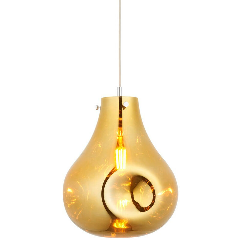 Merano Perugia Lampada da soffitto a sospensione singola, vetro metallizzato oro, piastra cromata | Finitura: vetro metallizzato oro, cromo | Materiale: vetro, acciaio | Classificazione IP: IP20 | Altezza minima: 55 cm | Altezza massima: 164,5 cm | Diametro: 32 cm | Tipo di lampada: E27 | N. di lampade: 1 | Lampadina inclusa: No | Dimmerabile: Sì - Lampadina dimmerabile richiesta | Peso: 2,5 | Potenza (max): 10W LED
