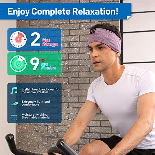 Perytong Cuffie per dormire, Cuffie con fascia per lo sport Bluetooth altoparlanti stereo HD ultrasottili perfette per dormire, allenarsi, yoga, insonnia, viaggi aerei, meditazione (viola)