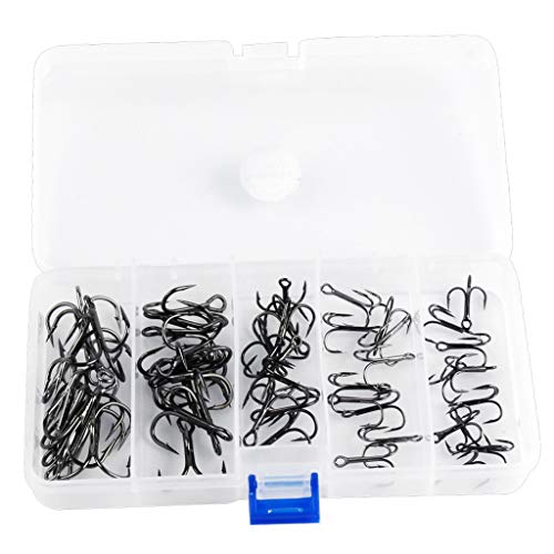 . 50pcs Crochets Treble de pêche 2/0 # 1 # 3 # 5 # 7 #, 10pcs pour chaque taille.