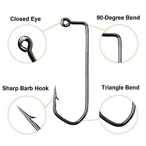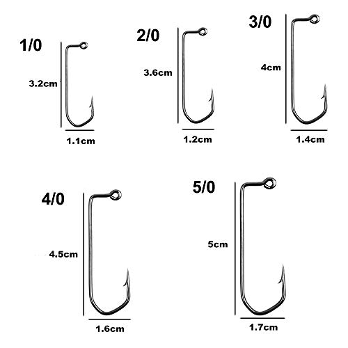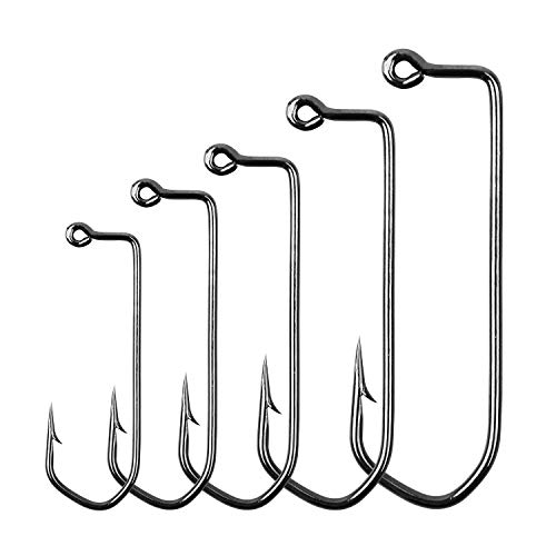 Ami da Pesca Barbarian Jig 100pcs V Bend in Acciaio al Carbonio Ganci 90 Gradi Lungo Offset Shank forgiati ami da Pesca spinato Nero Misura 1/0 2/0 3/0 4/0 5/0, 1/0-100pcs