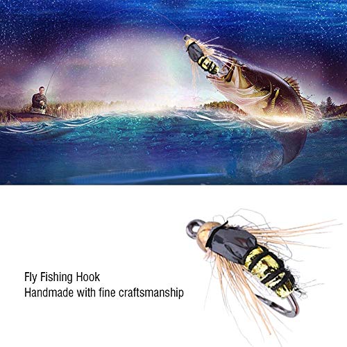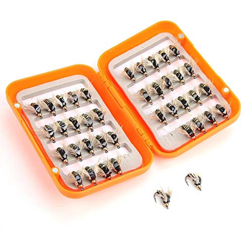 Pesca Mosche Artificiali Esche Set per Trota, 40Pcs Esche da Pesca a Mosca con Scatola, Realistiche Mosche di Pesca a Mosca Trota Mosche Kit per Acqua Dolce Pesca in Mare (Oro)