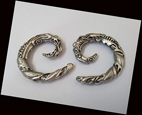 Pesi per lobi in Placcato Argento - Coppia Orecchini Big Dragons per espansione, Dilatatore Orecchio - Modello Unico Originale Artigianale Realizzato da artigiano Italiano - h 5 cm