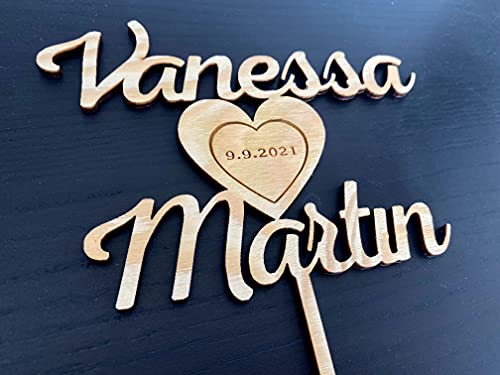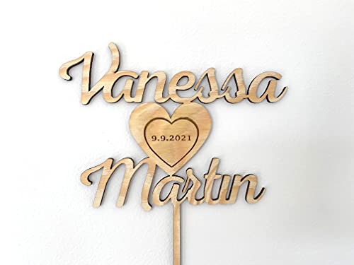 Pet-Jos Cake Topper Matrimonio in Legno Cake Topper Personalizzato con Nomi e la data del matrimonio Wedding Cake Decoration Wooden di Nozze Torta Nuziale