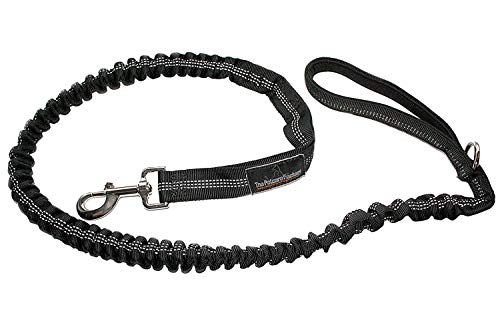 The Petcare Factory - Guinzaglio elastico per cani con doppio manico per ammortizzatore (nero) - resistente e impermeabile in nylon con cuciture riflettenti