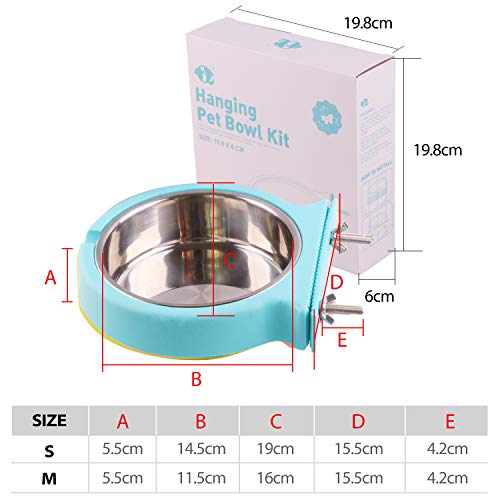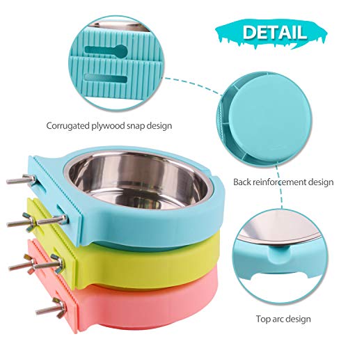 PETCUTE Ciotola di Cane Ciotola per Gatti in Acciaio Inox Appeso Pet Gabbia Ciotola per Acqua e Cibo per Uccello Coniglio(M Verde)