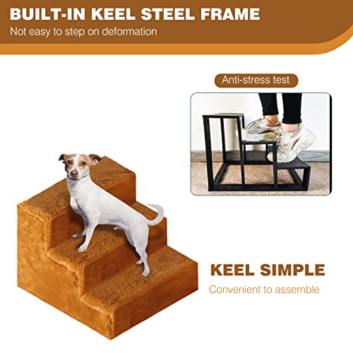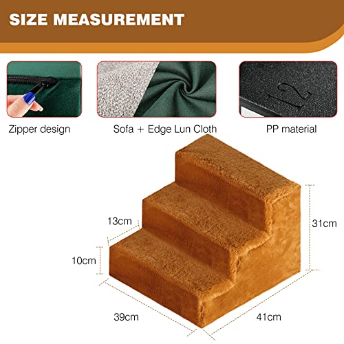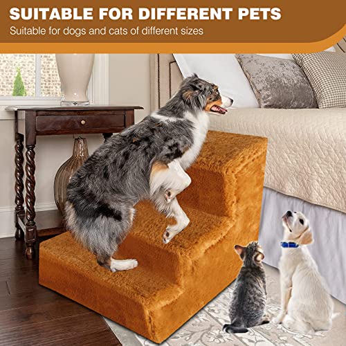 PETCUTE Scaletta per Cani e Gatti,Scala per Animali Scala per Gatti,Antiscivolo,Rampe per Cani,3 Gradini Scale per Animali Domestici con Rivestimento in Peluche Lavabile,Fino a 20lb Giallo