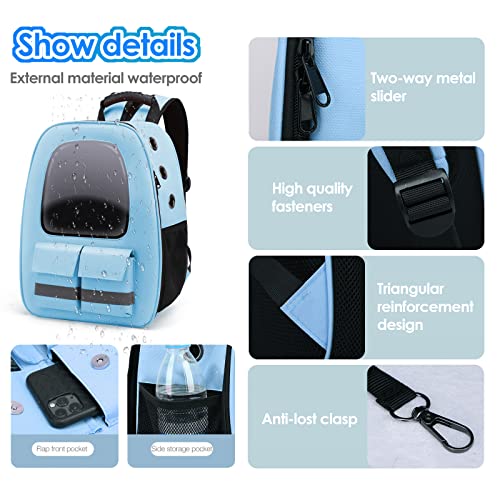【Design premuroso】6 fori di ventilazione rotondi in metallo e design a rete laterale, migliorano notevolmente la circolazione dell'aria. Dividiamo scientificamente l'area visibile e l'area nascosta dello zaino dell'animale domestico, che è comodo per te per osservare lo stato del gatto in qualsiasi momento, ed è sufficiente che il gatto osservi il mondo esterno, riducendo l'ansia e la paura di uscire.