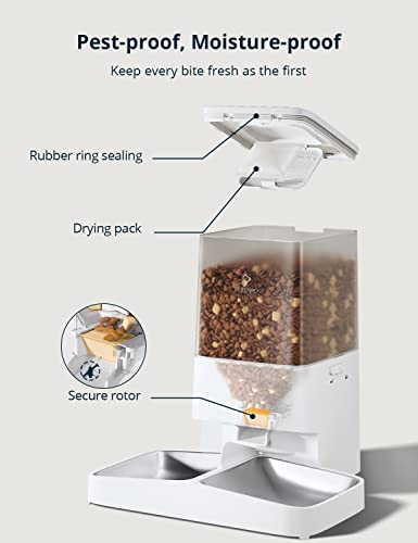 PETEMPO 5L Distributore Automatico Cibo Gatti, Dispenser Crocchette Gatto, Mangiatoia Automatica per Gatti e Cani con 2 Ciotola, Alimentatore per Animali con Timer e Registrazione Vocale 10S