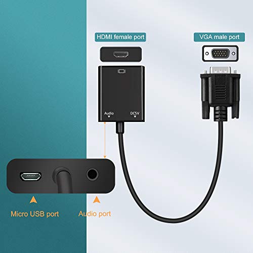 Risoluzione Full HD 1080P: Adattatore VGA a HDMI con una risoluzione VGA di massimo 1920 x 1080 pixel, una frequenza di immagini di 60 Hz. Per i segnali audio, il convertitore è un'uscita audio con jack da 3,5 mm e fornisce contemporaneamente audio e video. (Il cavo audio è incluso.)