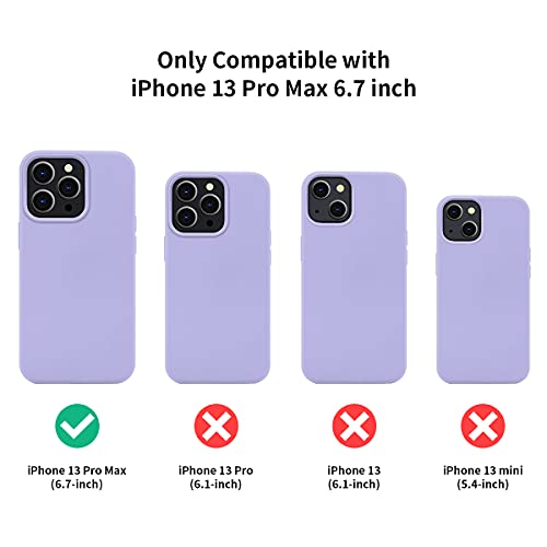 PETERONG Custodia in Silicone Compatibile con MagSafe per iPhone 13 Pro Max 6,7”,Custodia Silicone Liquido Protezione Completa con 2 Vetro Temperato,Slim Custodia Protettiva a 3 Strati Antiurto(Lilla)