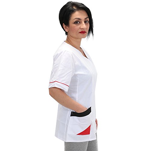 CAMICI DA LAVORO DONNA BIANCO CON INSERTI NERI E ROSSI,CON 100%COTONE MADE IN ITALY,OTTIMA VESTIBILITA' E OTTIME FINITURE,LEGGERO,ESTIVO IDEALI PER ESTETISTE-PARRUCCHIERE-CHEF CUCINA E UN'INFINITA' DI ALTRE ATTIVITA' LAVORATIVE...CONSIGLIATISSIMO!!!