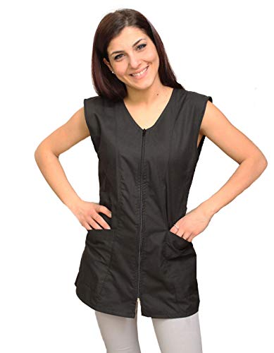 Petersabitidalavoro Camice da Lavoro Giromanica Donna,con Zip,Estetista,Parrucchiera,Alimentari,Bianco,Cotone,Made in Italy (Nero, L)