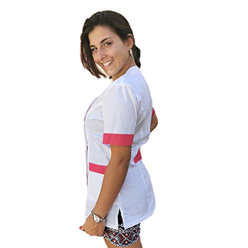 Petersabitidalavoro Camici da Lavoro Donna,Casacca Estetista,PARRUCCHIERA,CUOCA,Alimentari,maestra Asilo (M, Bianco Profilo Fuxia)