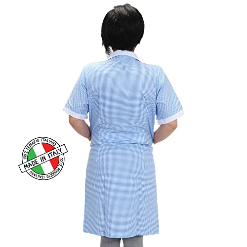 Camice donna,lungo,-Quadretti BIANCO- AZZURRi,ideali per lavori domestici,cameriere ai piani in alberghi,alimentari e altre infinite attivita'. 2 tasche anteriori piu' taschino pettorale,chiusura manica con bottoncino. I camici sono praticamente indistruttibili,durano anni!!! Di lavaggio e stiratura facile,non scoloriscono...i camici sono interamente prodotti in italia ....consigliatissimi!!!