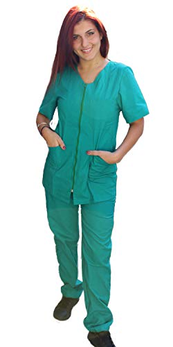 Petersabitidalavoro Divisa Completa Donna Slim Infermiere Verde Zip Sanitaria OSS da Lavoro Ospedale ESTETICA (s)