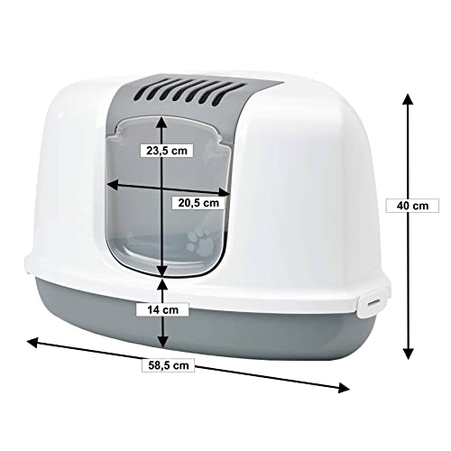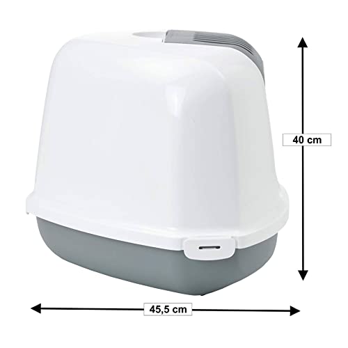 Disponibile nei colori bianco-grigio e bianco-blu. Dimensioni esterne (lunghezza x larghezza x altezza): circa 58,5 x 45,5 x 40 cm. Altezza base: circa 11,5 cm. Altezza dell'ingresso: circa 14 cm.