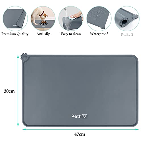 Pethee Tappetini Sottociotola per Cani, Impermeabile e antiscivolo tappetino e tappetino in silicone proteggono perfettamente il pavimento, grigio 47 x 30 cm