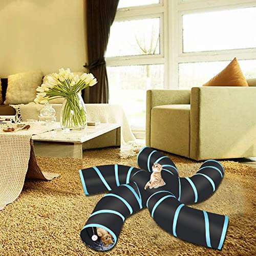 PetierWeit Tunnel per gatti tipo S per gatti da interno a 5 vie aggiornato tunnel pieghevole coniglio con palla interattiva giocattolo per animali domestici e tunnel