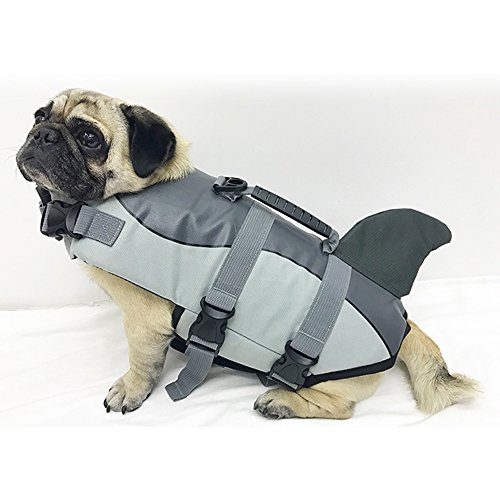 Petilleur Giubbotti di Salvataggio per Cani con Manico Giubbotto Salvagente per Cani Piccoli, Medi e Grandi (M, Grigio)