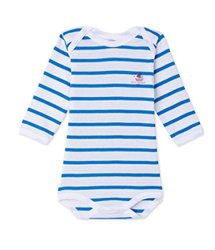 Questo body a maniche lunghe è realizzato in cotone. La pratica applicazione delle maniche è facile da indossare e togliere. Con il famoso motivo a righe Milleraies e la barca a vela rossa sul petto, il body da bambino porta chiaramente la scritta di Petit Bateau.