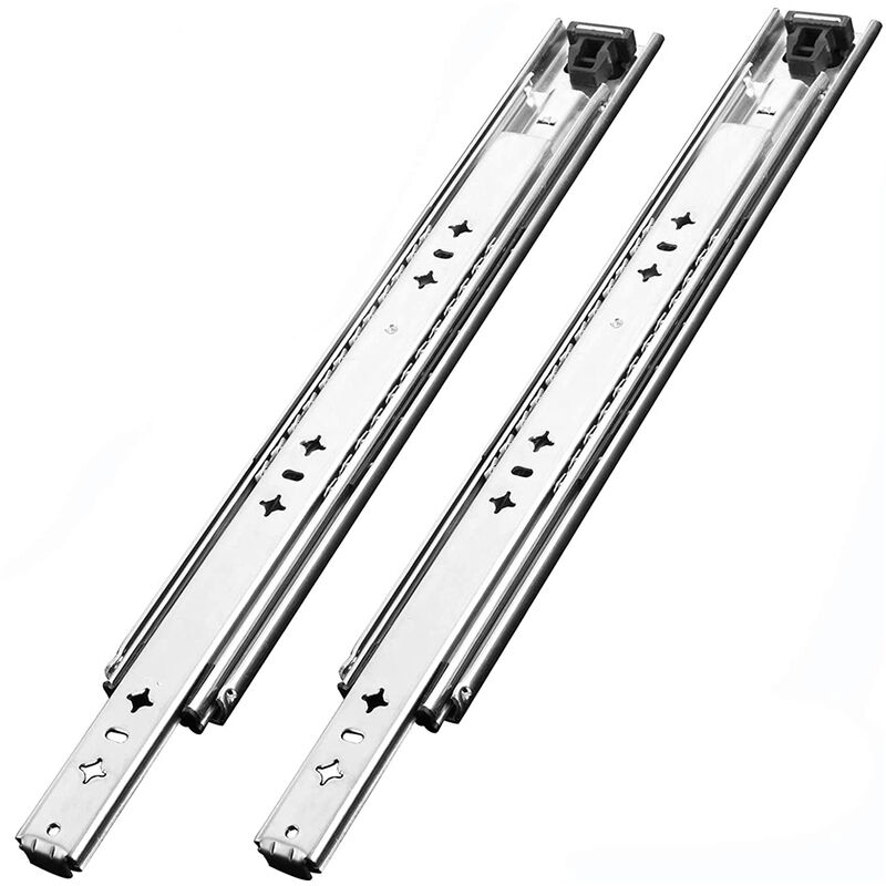 Lunghezza: 300 mm Larghezza: 53 mm Capacità di carico: 120kg •La slitta è realizzata in acciaio laminato a freddo con uno spessore di 1,8 mm e la capacità portante è di circa 120 kg. •La sua superficie è trattata con galvanica multistrato, che ha un buon effetto antiruggine ed è più resistente. •Le doppie file di sfere in acciaio di qualità industriale consentono al cassetto di aprirsi più facilmente e silenziosamente. •La slitta a sfera adotta un design a tre sezioni, che ha un lungo spazio di scorrimento e sfrutta appieno lo spazio del cassetto. •Adotta il design ad anello rimovibile, che può essere rimosso premendo le dita, ed è facile da installare. •Le guide dei cassetti riservano più fori di montaggio per un'installazione più stabile. •Viene utilizzato in molte occasioni, come cassetti, camper, grandi contenitori, ecc.