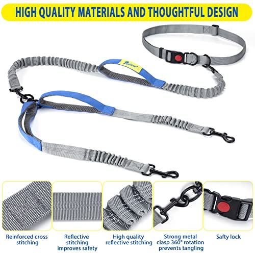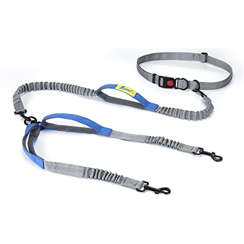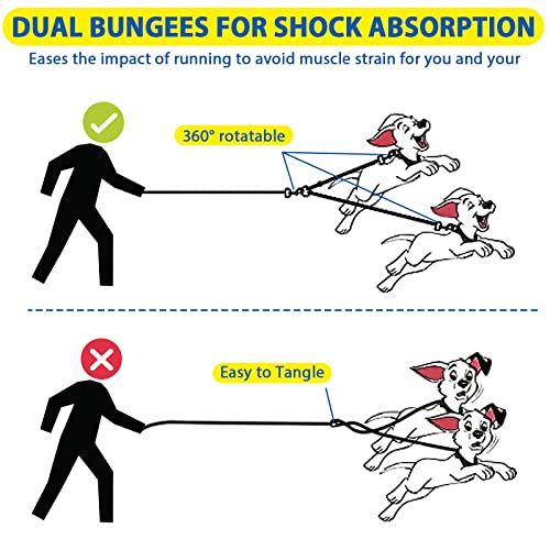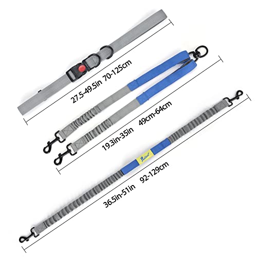 Due guinzagli per cani: 2 anelli a D sulla cintura permettono di attaccare 2 guinzagli, la cintura regolabile si adatta a una vasta gamma di taglie ed è usata sia da uomini che da donne. La fibbia a D rimovibile permette al cane di correre liberamente intorno a voi senza calpestare i vostri tacchi. Potete usare il vostro peso corporeo per controllare il cane.