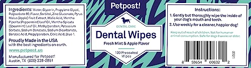 Petpost | Salviette Dentali per Cani - per l'Eliminazione dell'Alito Cattivo, Placca e Carie - 100 Tamponi Imbevuti con Una Soluzione Naturale per la Pulizia dei Denti