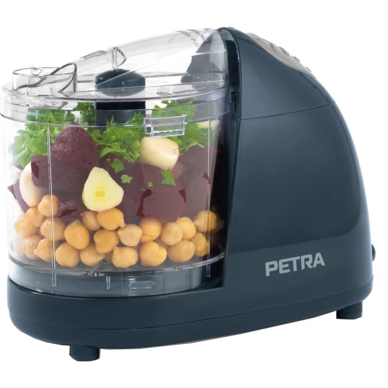 Descrizione Preparare il cibo è più semplice grazie al mini tritatutto compatto da 150 W di Petra, ottimo per preparare deliziose salse, puree e bruschette. Grazie al design salvaspazio e al funzionamento one-touch, il tritatutto di facile utilizzo si adatta ai piani di lavoro o può essere riposto nell'armadio. Con una resistente lama rimovibile in acciaio inox e un recipiente trasparente da 350 ml, questo tritatutto elettrico è ideale per affettare cipolle e peperoni e assicura la massima tranquillità durante l'uso.