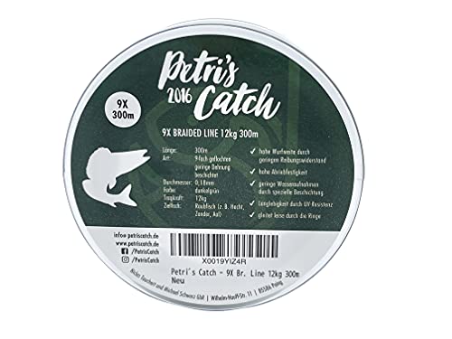 Petri's Catch 9 lenza intrecciata da pesca | 300 m | 20 kg | 0,28 mm di diametro | Filo da pesca a 9 vie | luccio, pesce marino, funghi