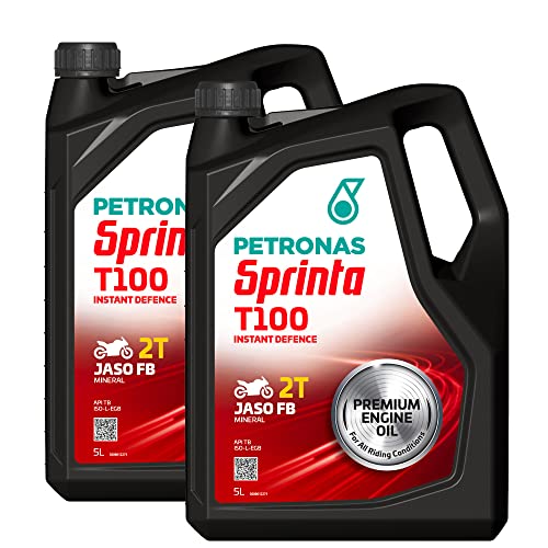 PETRONAS Kit 2X Sprinta T100 Olio Motore Minerale per Moto e Scooter 2 Tempi - 2 Confezioni da 5 Litri