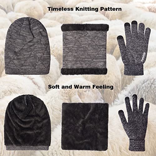 Petrunup Set Sciarpa Cappello e Guanti Uomo, Cappello Scaldacollo e Guanti Invernale con Fodera in Pile Caldo per Sci Pesca All'aria Aperta, Grigio