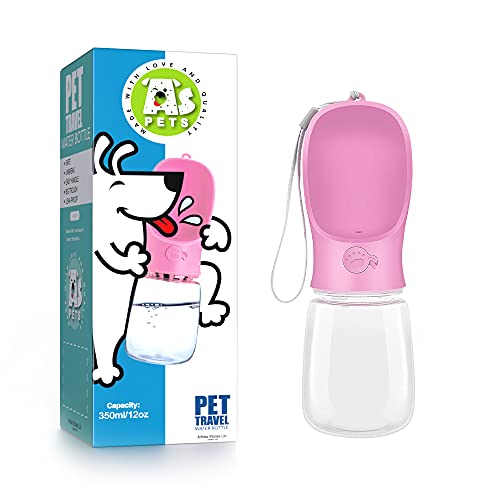 AS Pets - Borraccia portatile per cani, ideale per passeggiate a piedi, bevande, antibatterica a prova di perdite, contenitore da viaggio per animali domestici, regalo per cani (350 ml, rosa)