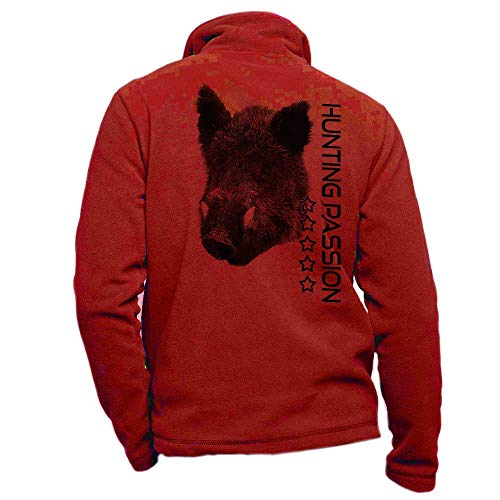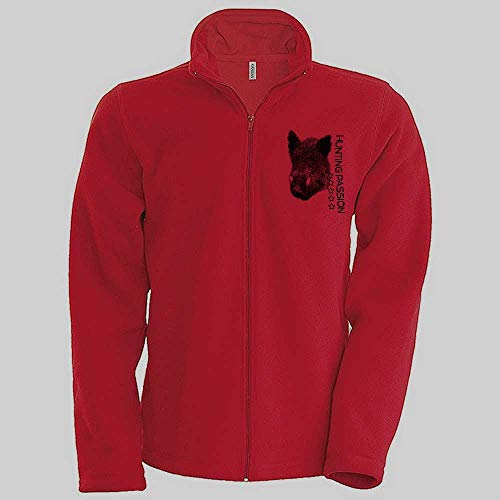 Pets-easy Giacca in pile con uno Sanglier e Hunting Passion - vestito da caccia personalizzato con una gibier, rosso, 4XL