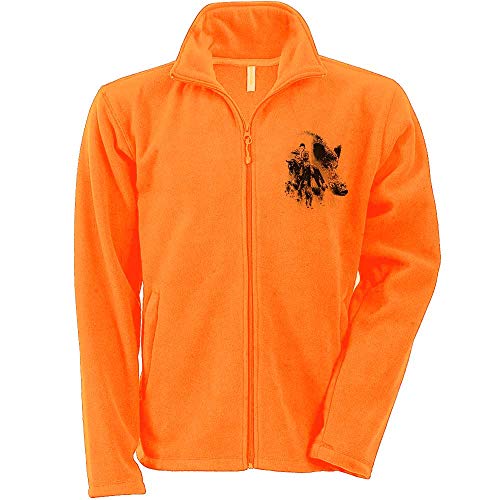 Pets-easy - Giubbotto da caccia in pile arancione personalizzato con cinghiale, cani, cavallo, tromba, taglia 4XL