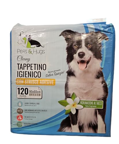 Pets & Hugs tappetino igienico profumato al Talco. 120 pezzi. Con strisce adesive (60x60 120 pezzi)