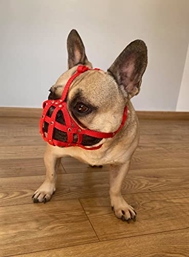 L&J Pets Uk Museruola per cani francesi Bulldog francese un altro muso corto simile (FB2, rosso)