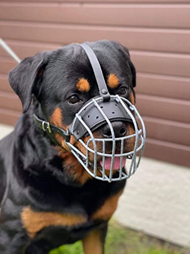 L&J Pets Uk Museruola in filo metallico resistente per cani Rottweiler, Mastiff Golden Retriever e altri (R2, pelle maculata/nera)