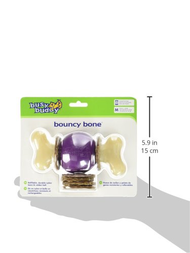 PetSafe Busy Buddy Bouncy Bone - Giocattolo da Masticare per Cani 3 in 1, Osso per Cani, Resistente, Spazzolino da Denti - M