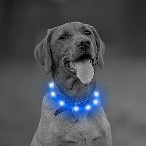 PetSol Collare a LED per Cani Extra Luminoso Blu - Ricariabile con USB - Adattabile alle Dimensioni del Cane (da 20cm a 70cm) con modalita statica o Lampeggiante - Resistente alle intemperie