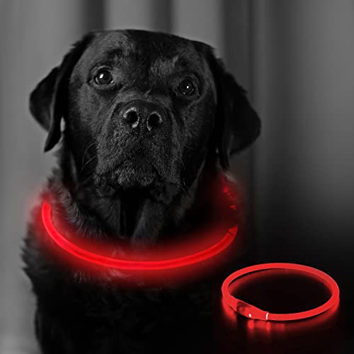 PetSol Collare per cani a LED Rosso - Collare di sicurezza per animali domestici con luce lampeggiante ricaricabile con USB per cani e gatti - Taglia S, M e L - Design moderno e luminoso
